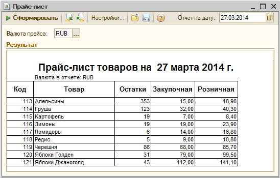 Отчет «Прайс-лист»