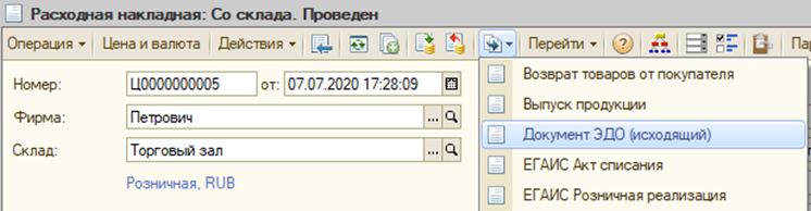 Для передачи расходных документов по ЭДО на основании документов «Возврат товаров поставщику» и «Расходная накладная» вводится специальный документ — «Документ ЭДО (исходящий)».