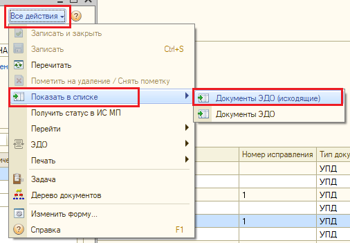 Для этого откройте из самого документа меню "Все действия" далее "Показать в списке" → "Документы ЭДО (исходящие)" и установите пометку на удаление.