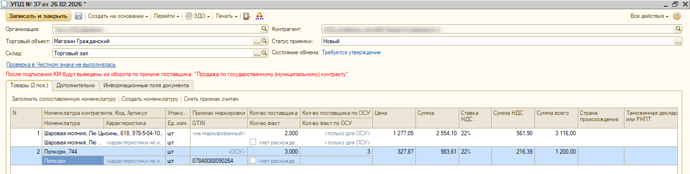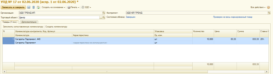 Особенности работы с УПД при экземплярном учете маркированной продукции