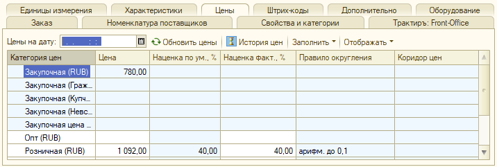 Смена данного режима в ходе работы не желательна, но, если такая необходимость возникает, необходимо непосредственно из карточки номенклатуры с помощью ссылки «Создать акт переоценки» переоформить цены.