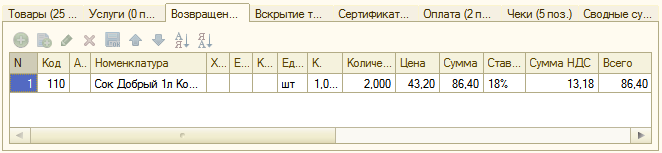 На закладке «Возвращенные товары» фиксируется информация о товарах, возвращенных покупателем через кассу в день покупки.