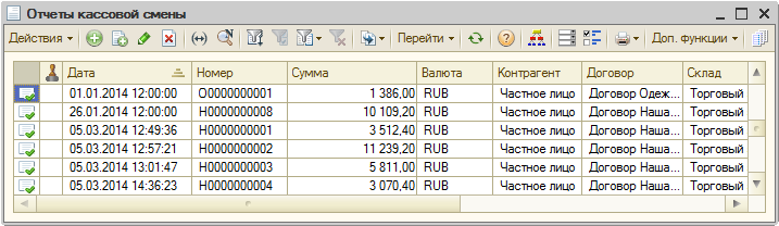 Список отчетов кассовых смен хранится в журнале «Отчет кассовой смены».