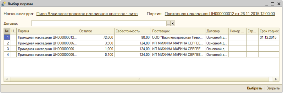 Документ подбирается в диалоговом окне «Выбор партии», которое открывается по нажатию на кнопку «…».