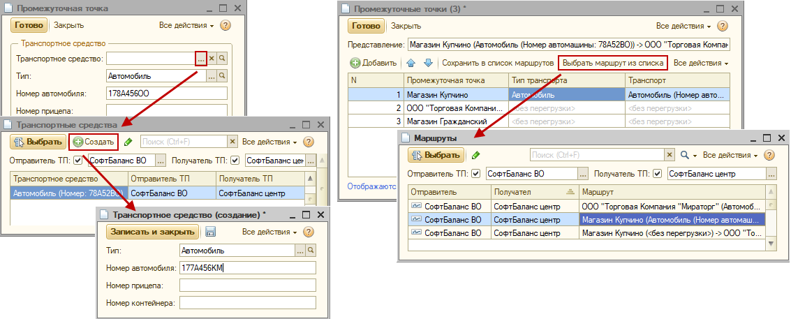 Транспортные средства и маршруты можно сохранять для дальнейшего быстрого подбора в документ.