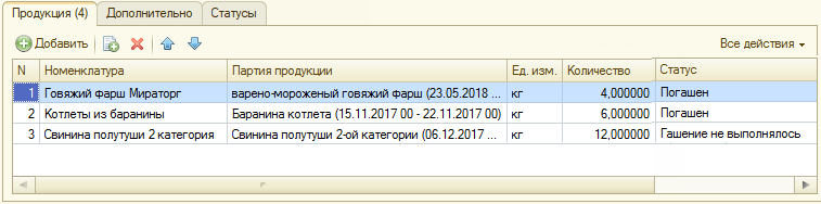 В ТЧ закладки «Продукция» можно увидеть статус каждого ВСД (колонка «Статус»). Карточка электронной ветеринарной справки открывается по двойному клику на строку.