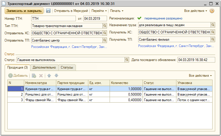 Транспортными документами в системе «Меркурий» регистрируются перемещения продукции внутри организации и между хозяйствующими субъектами (организациями), а также возвраты товара поставщику.