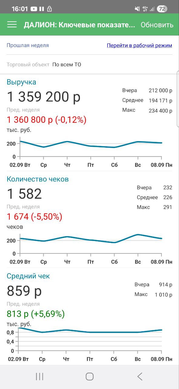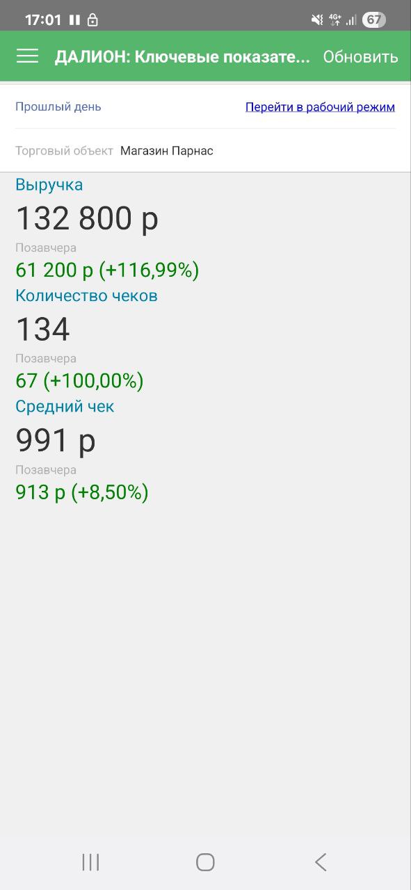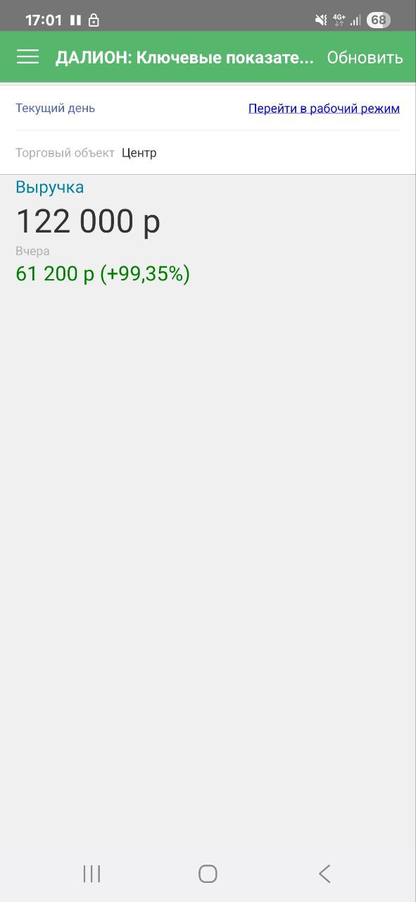 - текущий день (если на стороне ДАЛИОН в обработке Мобильное приложение "ДАЛИОН: Ключевые показатели" включить выгрузку соответствующих данных через Все функции);