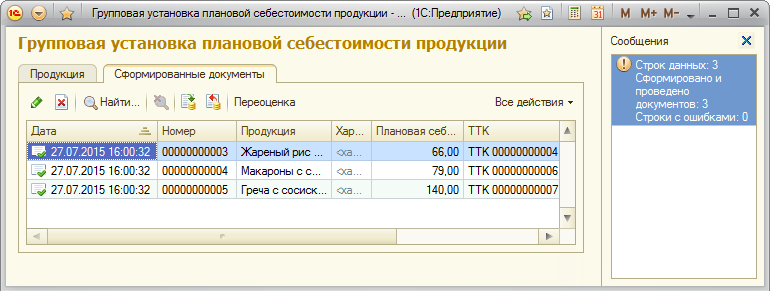 По кнопке «Сформировать документы» будут созданы новые расчеты себестоимости продукции и добавлены в одноименный журнал. Документы создаются проведенными.