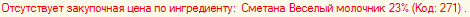 Значение в колонке «Текущая себестоимость» рассчитывается автоматически по закупочной цене ингредиентов. Если у какого-либо ингредиента не указана себестоимость, то значение в колонке будет выделено красным цветом и в подвале обработки появится надпись