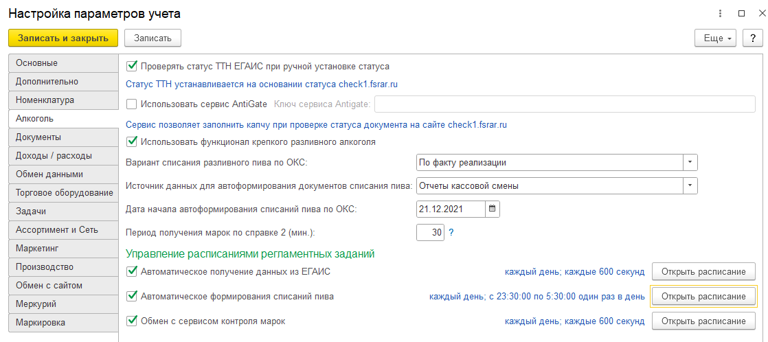 - Использовать функционал крепкого разливного алкоголя — константа включает функционал учета крепкого разливного алкоголя в общепите.