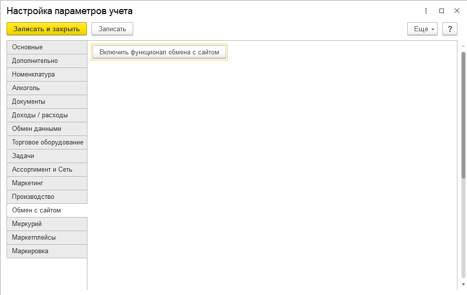 Закладка "Обмен с сайтом"