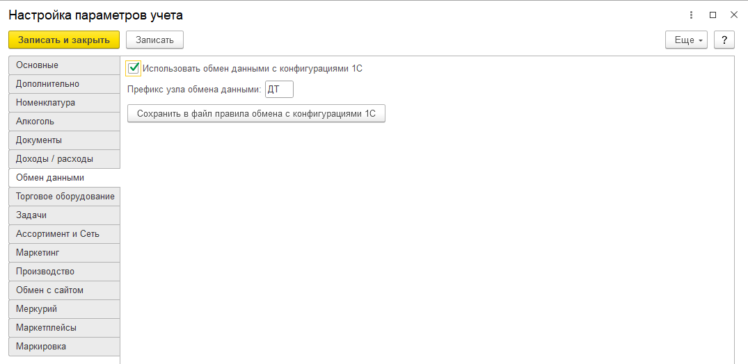 Константа данной закладки включает возможность обмена данными с конфигурациями «Бухгалтерия предприятия 3.0» и «Розница 2.2».