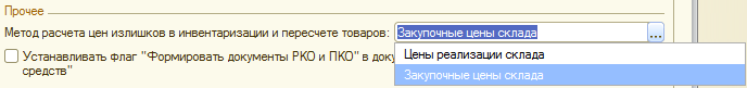 - Метод расчета цен излишков в инвентаризации и пересчете товаров — выбирается из двух вариантов: