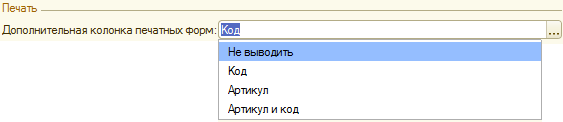 - Дополнительная колонка печатных форм — задает информацию в дополнительной колонке (Код, Не выводить), а при включенной константе «Использовать артикулы товаров» (Артикул или Артикул и Код):