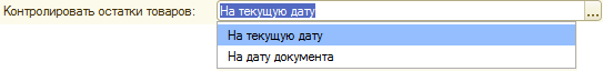 При выключенном флаге система сообщает только о сумме превышений, при включенном выводятся данные по каждому товару с превышением. - Контролировать остатки товаров — определяет вариант контроля остатков товаров при проведении товароучетных документов.