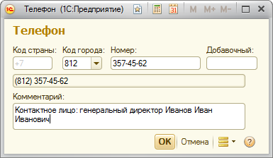 При добавлении контактной информации через диалоговое окно есть возможность оставить комментарий для пользователей системы.