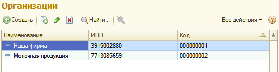 Справочник «Организации»