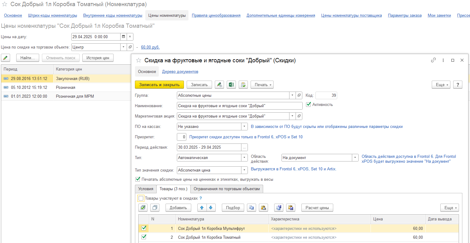 - если товар учитывается в разрезе характеристик, то вариант задания цены — на номенклатуру или на характеристику;