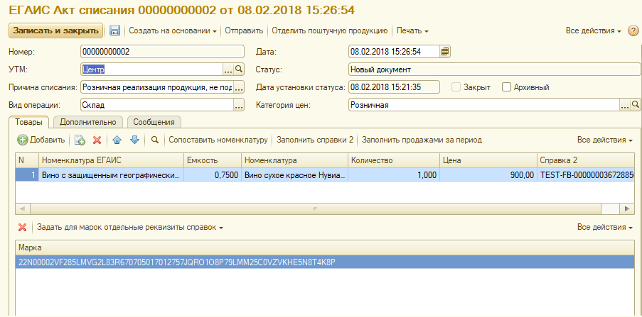 Справка 2 заполняется автоматически, если считанная в документ марка сопоставлена со справкой, вручную - по кнопке или автоматически по ФИФО по команде «Заполнить справки 2».