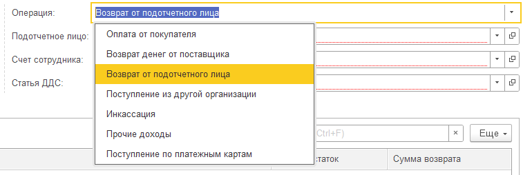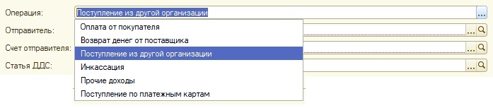 Кроме того, в соответствии с назначением платежа выбирается операция документа: