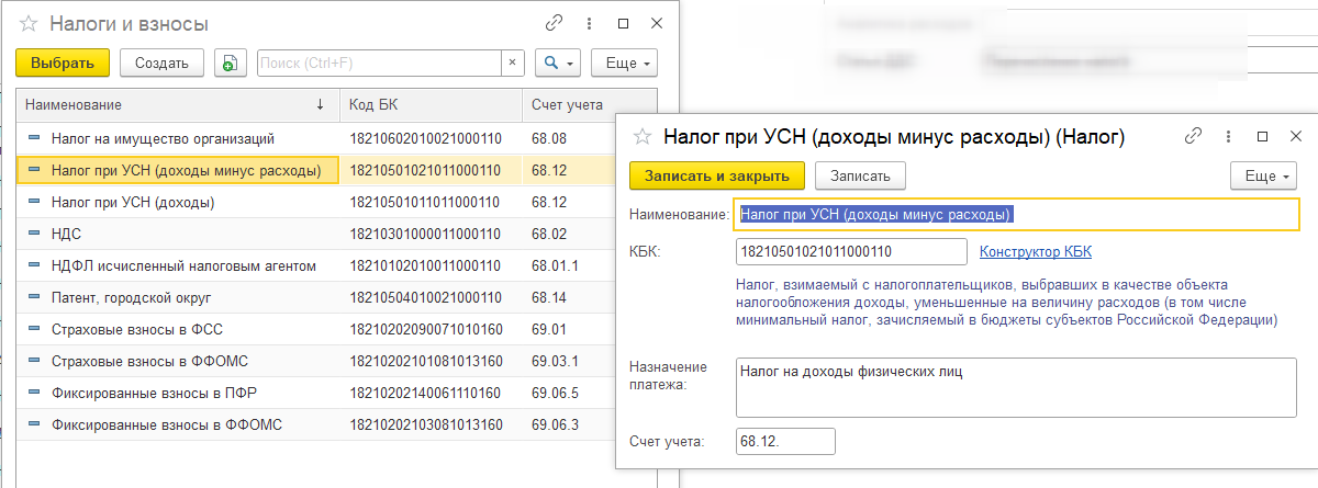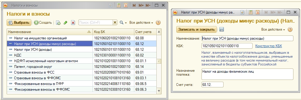 Существует соответствующий справочник "Налоги и взносы", в который можно внести данные по уплачиваемому налогу, если платеж регулярный и сохранить. При необходимости их после можно будет отредактировать.