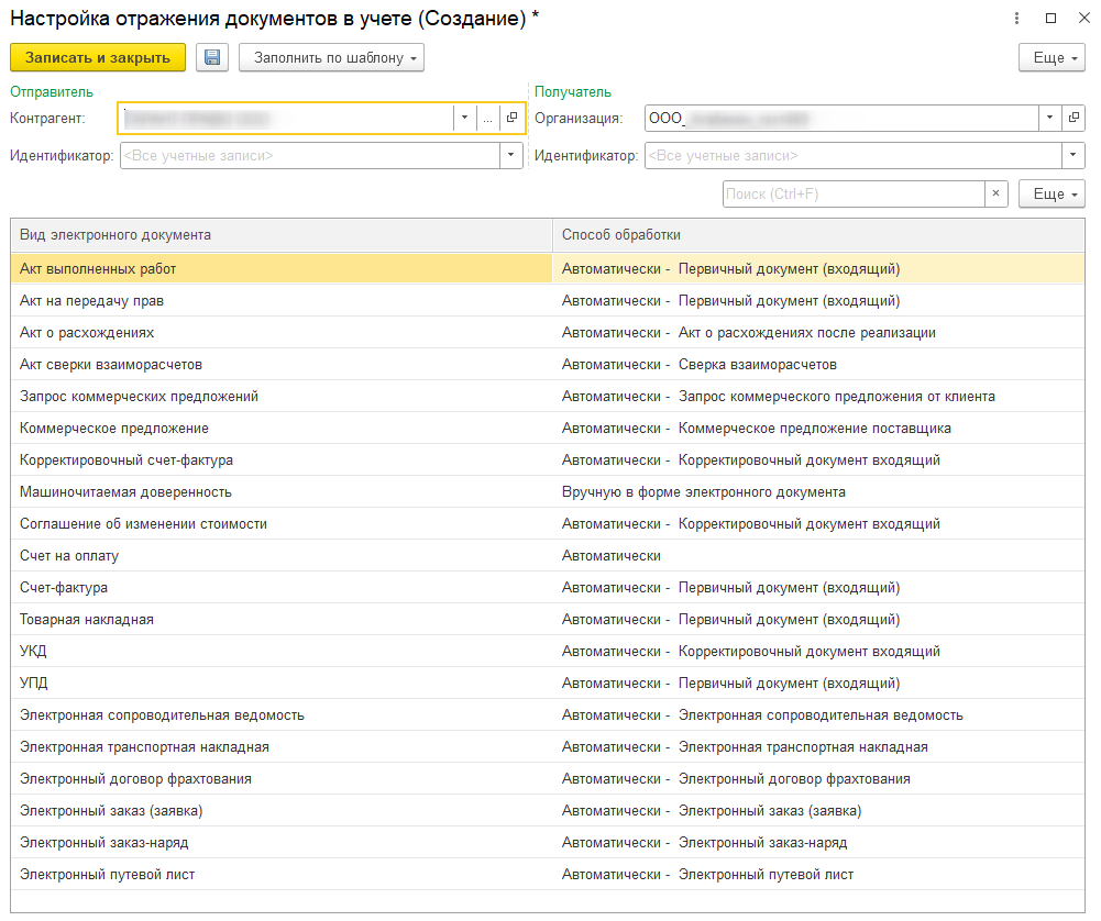 В форме указываем Организацию и ее Учетную запись, Контрагента для подключения к обмену и Договор в случае использования нескольких идентификаторов для одного контрагента.