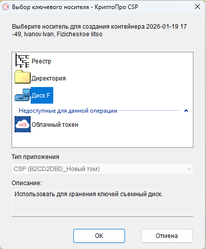 Если вы выпускаете сертификат в бумажном виде, то обратите внимание, что перед печатью сначала создается контейнер (в него в последствии будет установлен выданный сертификат электронной подписи) и только после этого возможна печать самого заявления.
