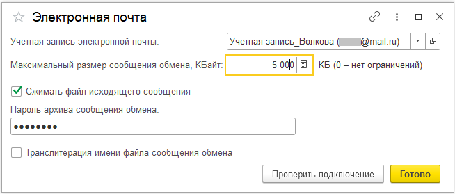 Электронная почта | При настройке синхронизации будет сформирован файл(ы) с настройками подключения (*.xml). В приложении-корреспонденте при выборе типа подключения, необходимо выбрать тип подключения и загрузить файл с настройками подключения.