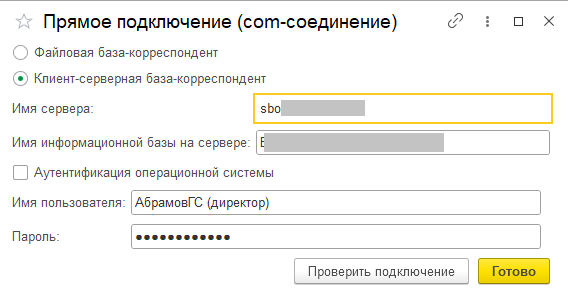 | Прямое подключение (com-соединение) | С помощью переключателя выберите вариант информационной базы: