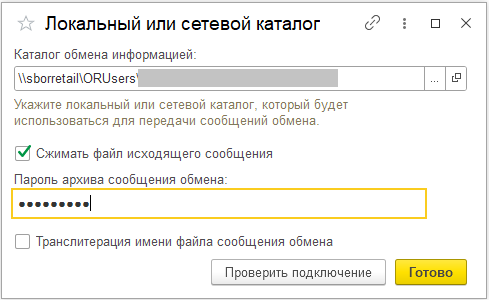 | Локальный или сетевой каталог | При настройке синхронизации будет сформирован файл(ы) с настройками подключения (*.xml). В приложении-корреспонденте при выборе типа подключения, необходимо выбрать тип подключения и загрузить файл с настройками подключения.