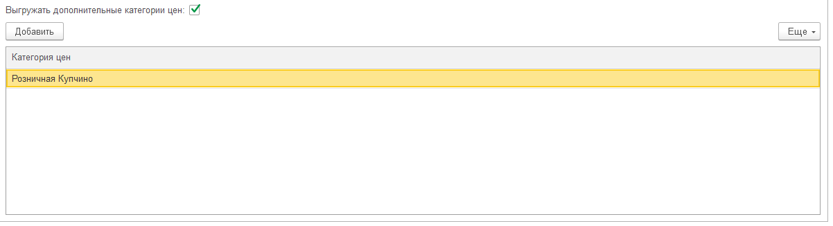 - Дополнительные категории цен для выгрузки могут быть указаны ниже;