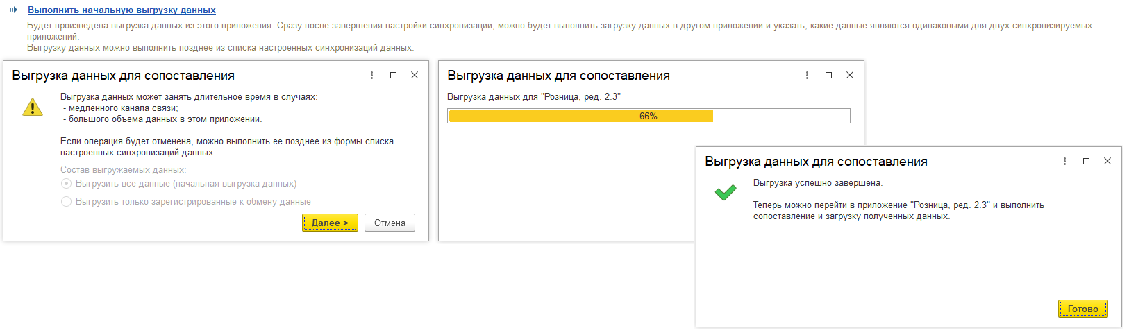 После успешной выгрузки необходимо на стороне розницы выполнить загрузку и сопоставление данных.