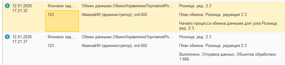 Для контроля результатов обмена как на стороне конфигурации «1С: Розница», так и на стороне конфигурации «ДАЛИОН: ТРЕНД» используется журнал регистрации, который вызывается в подсистеме «Интеграция», пункт меню «Обмен с 1С: Розница 2.2», гиперссылки с информацией, когда были получены/отправлены данные.