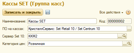 Для Set Retail 10 / Set Centrum 10 в поле «Сервер Set 10» указывается торговое оборудование, в параметрах которого задан адрес сервера для обмена.