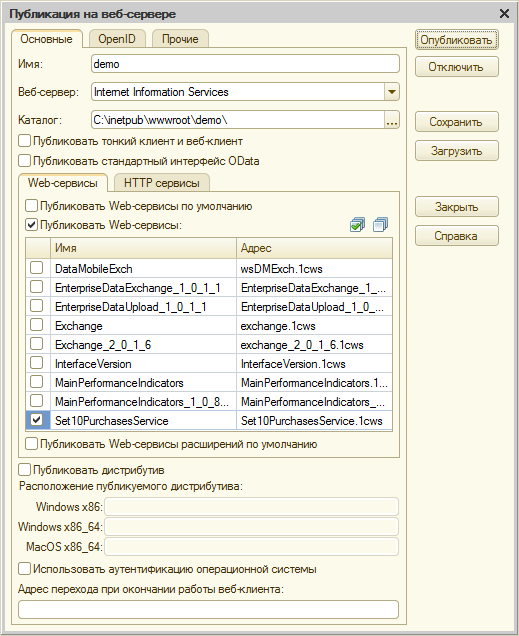 - опубликовать соответствующий web-сервис;