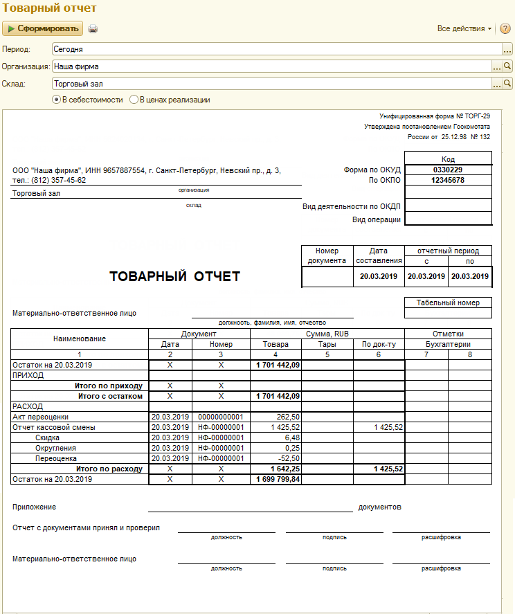 ОКС формируется автоматически при снятии продаж с кассового ПО. При неавтоматизированном рабочем месте кассира документ может быть введен вручную.