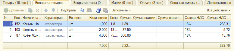 На закладке «Товары» отображаются проданные товары и оказанные услуги (см. скриншот выше).