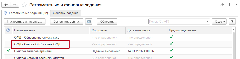 3. Автоматическая сверка включается регламентным заданием "ОФД - Сверка ОКС и смен ОФД".