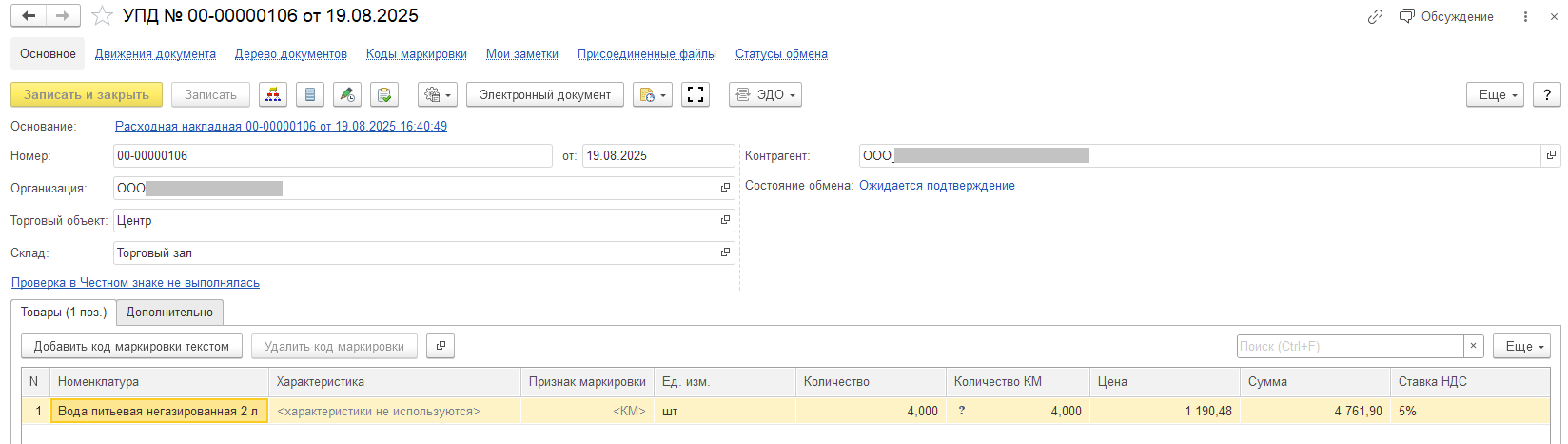 Если исходящий УПД содержит весовую молочную продукцию, то количество КМ необходимо указать вручную