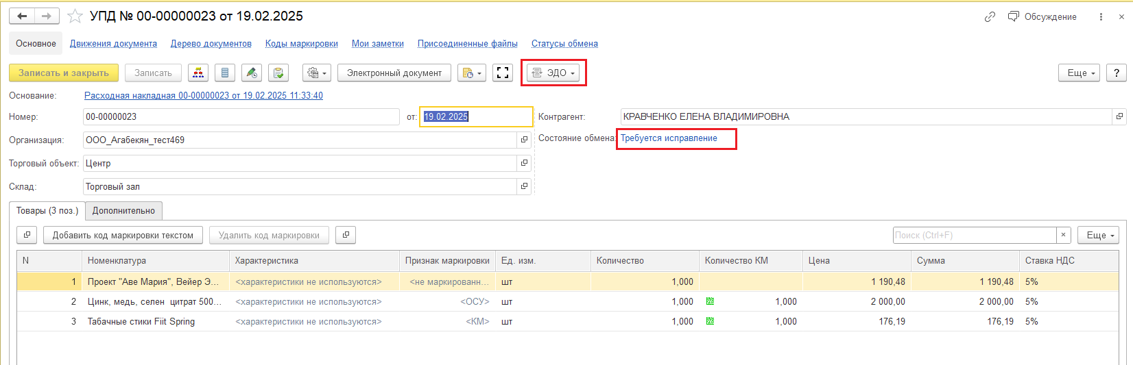 До подписания документа получателем — доступна предварительная проверка в Честном знаке. На этом этапе проверяются коды маркировки содержащиеся в документе и участники оборота. Если на этом этапе выявлены какие-либо ошибки, то подписывать и отправлять документ не рекомендуется;