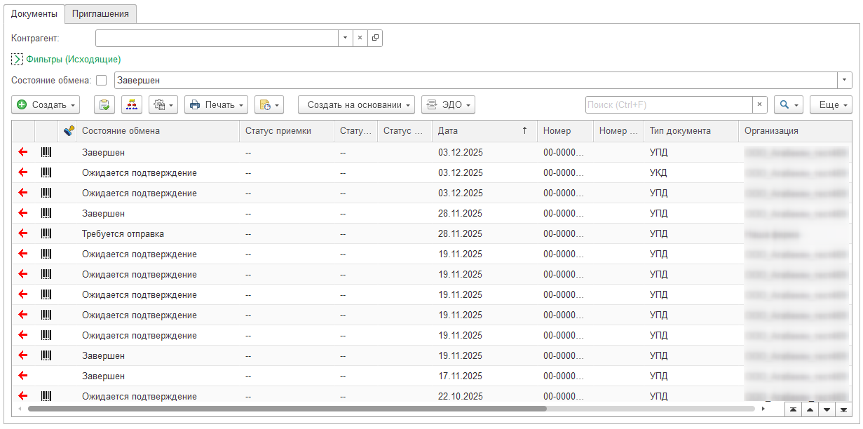 Исходящие документы ЭДО