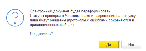 В момент сохранения внесенных изменений документ будет переформирован, пользователю будет предложено очистить статусы проверки документа в честном знаке.
