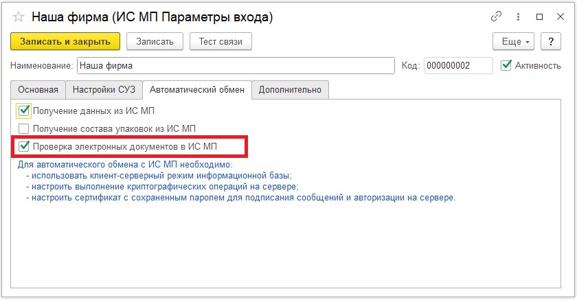 Если у вас несколько организаций, то включить автоматическую проверку необходимо по каждой настройке ИС МП.
