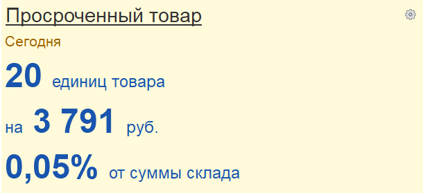 В третьей - процент от общей суммы склада в закупочных ценах. По гиперссылке в заголовке можно перейти к отчету Потенциально просроченный товар в закупочных ценах.