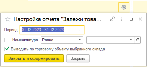 Для показателей Залежи товаров и Упущенная выгода на неделю возможна установка настройки "Выводить по торговому объекту выбранного склада", в этом случае показатели будут рассчитываться по всему ТО.