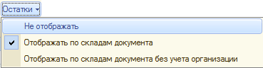 По кнопке «Остатки» выбирается один из вариантов отображения информации об остатках товаров: