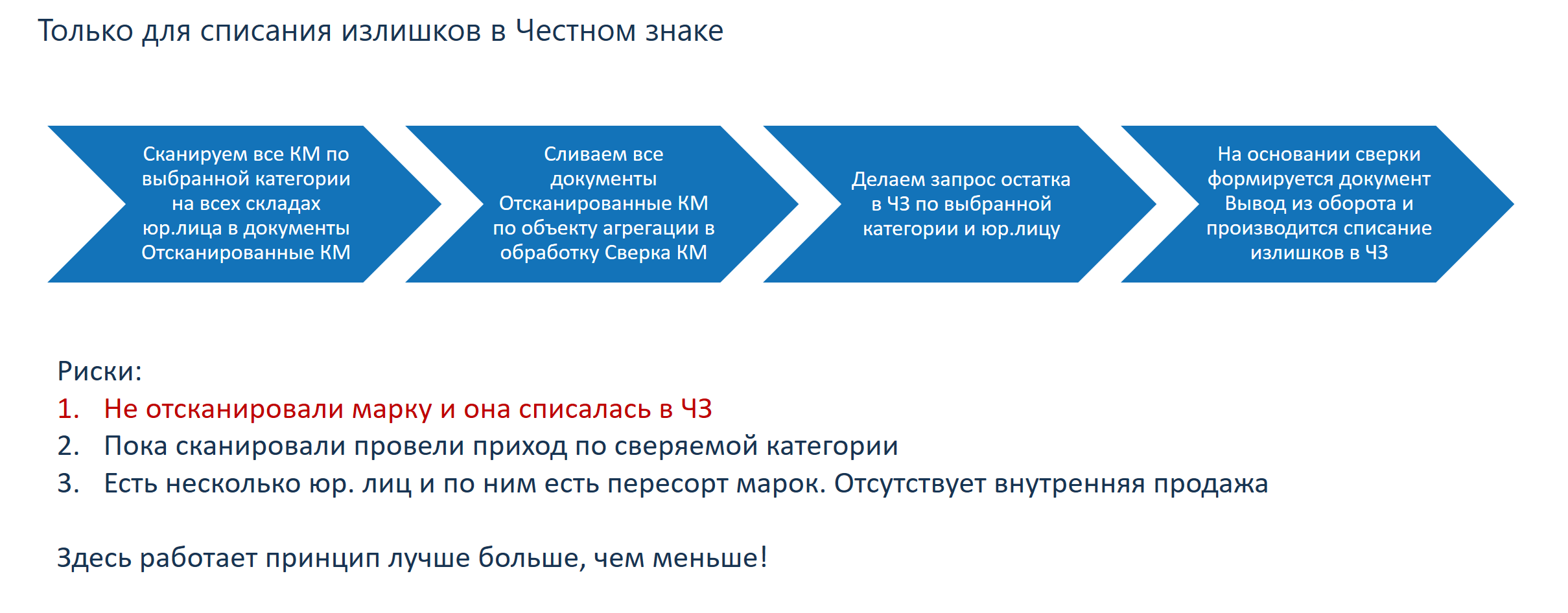 Выше приведена схема порядка действий для проведения сверки. Обратите внимание на основные риски при проведении сверки.
