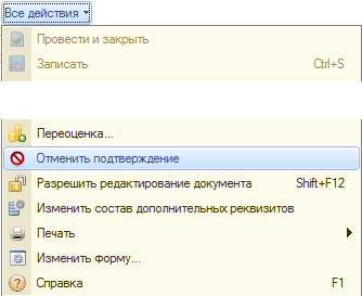 Для внесения изменений необходимо Отменить подтверждение (команда доступна из списка Все действия).