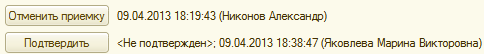 5. После окончательного заполнения табличной части закладки «Товары принятые» принятие товара необходимо подтвердить, после чего товар является принятым на складе-получателе, а документ приобретает статус «Подтвержден» и запрет на редактирование.